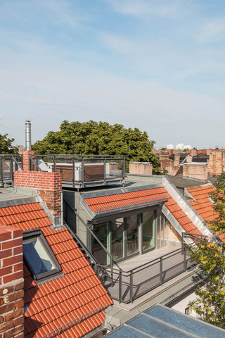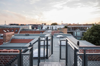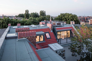 In der Nähe zur Warschauer Brücke, einer der stadträumlichen Schnittstellen des "neuen" Berlins, wurden die ehemaligen Trockenböden einer typischen Mietskaserne des beginnenden 20. Jahrhunderts zu drei Wohnungen umgebaut. Beim hier gezeigten Projekt handelt es sich um die rund 175 m² große Dachgeschosswohnung des Hinterhauses.