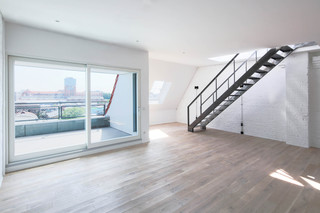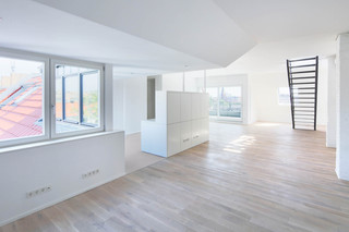 Beim hier gezeigten Projekt handelt es sich um die beiden zusammen rund 200 m² großen Dachgeschosswohnungen des Vorderhauses.
